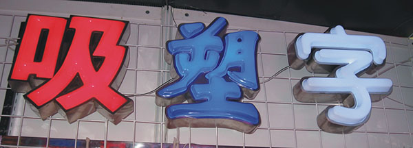 第二是模具制作。亚克力面板通过真空定位、吸压成型,即使是同一个字,尺寸不同也需要不同模具,而模具制作本身要求精度高质量好。因为模具本身的精度、质量直接关系到亚克力产品的质量,而模具制作具有较高工艺水平,需要经验丰富的技术人员。因此,如前所述,目前市场上吸塑灯箱一直处于高等的价位,模具的加工应该说是其中最主要的技术。[1]第三是后期制作。前面讲过,现在亚克力吸塑制作基本是机械化制作,一些新设备的应用在提高生产效率同时,大大减轻了工人的劳动强度。亚克力吸塑材料基本成型后,还要经过铣边、镂铣、打磨等几道工序,最后将灯箱铺设光源,烤漆后制作完成。